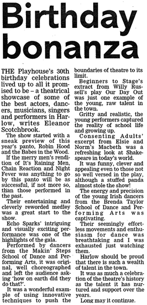 This Variety Shows was an extravaganza of theatrical talent to mark the 30th Birthday of The Playhouse Harlow